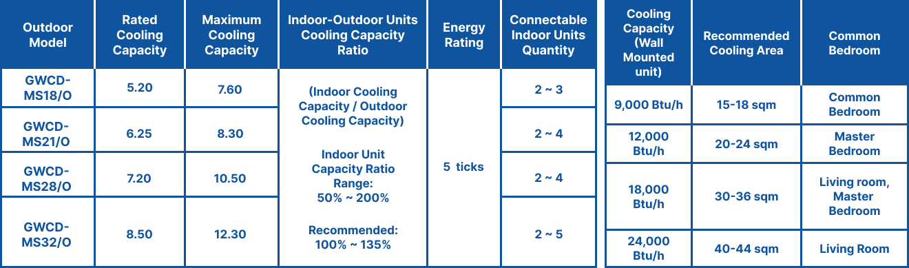 One outdoor unit supports multiple indoor units, offering excellent cost-effectiveness and flexible installation options. Compatible with both wall-mounted and ducted units, it ensures easy setup and maintenance. The wall-mounted option features a multilayer filter system for cleaner air, black fin corrosion protection for enhanced durability, and smart connectivity via Wi-Fi and Bluetooth using the Gree+ app, making it a smart, reliable choice for modern living.
