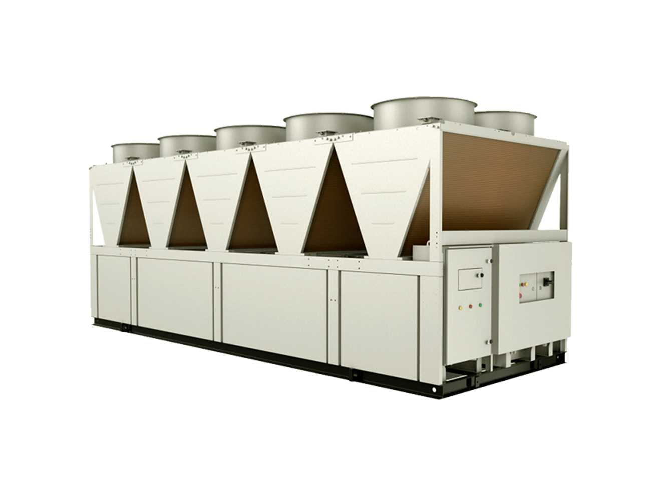 An air-cooled screw chiller is a self-contained cooling system that uses a screw compressor and air (via fans) to remove heat so it doesn’t need a cooling tower.